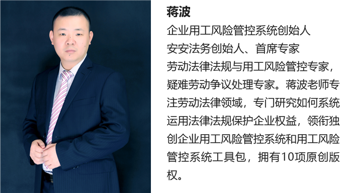 安安由劳动法律法规与人力资源权威专家蒋波老师领衔创建,是国内专注为企业提供“用工风险管控”培训和咨询落地的专业服务机构,在企业用工风险管控培训咨询细分领域处于领先的位置。