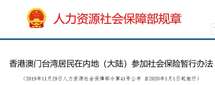 香港澳门台湾居民在内地(大陆)参加社会保险暂行办法